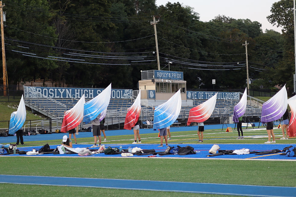 We are the performance and visual story-telling ensemble that performs with the award-winning Roslyn marching band. We spin flags and rifles, we dance, and we create stunning visual effects that interpret the show theme and music. We train throughout the year in dance, equipment, and performance classes to produce our fall show. While we may make it look easy, it takes a lot of time, effort, and dedication to put our productions together.